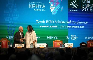 | Keywords: sign text KENYA, Nairobi: In a photograph taken by Make It Kenya 15 December 2015, Kenya's Cabinet Secretary for Foreign Affairs and Trade, Amina Mohamed, greets Fernando De Mateo Y Venturini, Chairman of the General Council of the World Trade Organisation (WTO) at the opening of the WTO ministerial conference in the Kenyan capital, Nairobi; the first to be held on African soil. MAKE IT KENYA PHOTO / STUART PRICE. KENYA, Nairobi: In a photograph taken by Make It Kenya 15 December 2015, Kenya's Cabinet Secretary for Foreign Affairs and Trade, Amina Mohamed, greets Fernando De Mateo Y Venturini, Chairman of the General Council of the World Trade Organisation (WTO) at the opening of the WTO ministerial conference in the Kenyan capital, Nairobi; the first to be held on African soil. MAKE IT KENYA PHOTO / STUART PRICE. |