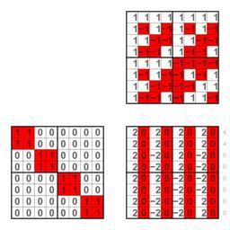 | Keywords: 1100 0000 Walsh spectrum.svg Walsh spectra of 3-ary Boolean functions like 1100 0000 The binary strings are multiplied with a Walsh matrix of order 8 The red squares in the background are additional information and show the product of the binary strings with a binary Walsh matrix own Lipedia Walsh spectrum of 3-ary Boolean functions |