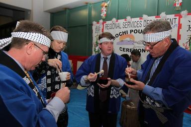 | Keywords: 110111-N-9999O-036 (5349073095).jpg From left John Goodhart the vice commander of Naval Supply Systems Command; U S Navy Cmdr Karen Little the regional services director of Fleet and Industrial Supply Center FISC Yokosuka; Bill Frazier the regional services deputy director of FISC; and Bill Bickert deputy commander of FISC eat traditional ozoni soup during a Japanese new year mochi-pounding welcome celebration in Yokosuka Japan Jan 11 2011 U S Navy photo/Released https //www flickr com/photos/39955793 N07/5349073095/ 110111-N-9999O-036 2011-01-11 11 33 https //www flickr com/people/39955793 N07 U S Department of Defense Current Photos PD-USGov U S Department of Defense Current Photos https //flickr com/photos/39955793 N07/5349073095 2016-09-03 15 31 59 United States Government Work Zoni Welcoming ceremonies United States Navy images from Yokosuka |