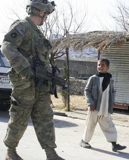 | Keywords: 110120-A-2911M-130 (5396322952).jpg U S Army Spc Jonathan Huston left an infantryman with Charlie Company 1st Battalion 133rd Infantry Regiment talks with an Afghan boy during a patrol through Alingar Nuristan province Afghanistan Jan 20 2011 In addition to the patrol the Soldiers provided security for a meeting between military and local government officials and searched a nearby village for improvised explosive devices DoD photo by Staff Sgt Ryan C Matson U S Army/Released https //www flickr com/photos/39955793 N07/5396322952/ 110120-A-2911M-130 2011-01-20 11 52 https //www flickr com/people/39955793 N07 U S Department of Defense Current Photos PD-USGov U S Department of Defense Current Photos https //flickr com/photos/39955793 N07/5396322952 2016-09-03 15 30 57 United States Government Work Boys of Afghanistan in 2011 Nuristan Province in the War in Afghanistan 2001-present |