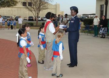 | Keywords: 110308-F-OX767-071 (5537344309).jpg Randolph Air Force Base Girl Scouts present the U S flag to Air Force Col Soledad Lindo-Moon the 359th Medical Group commander during the annual Girl Scout Flag Retreat Ceremony at Randolph Air Force Base TX March 8 2011 The ceremony was attended by representatives of the Girl Scouts of Southwest Texas area mayors school officials and Air Force leadership DoD photo by David Terry U S Air Force/Released https //www flickr com/photos/39955793 N07/5537344309/ 110308-F-OX767-071 2009-09-15 13 00 https //www flickr com/people/39955793 N07 U S Department of Defense Current Photos PD-USGov U S Department of Defense Current Photos https //flickr com/photos/39955793 N07/5537344309 2016-09-03 14 52 54 United States Government Work United States Department of Defense |