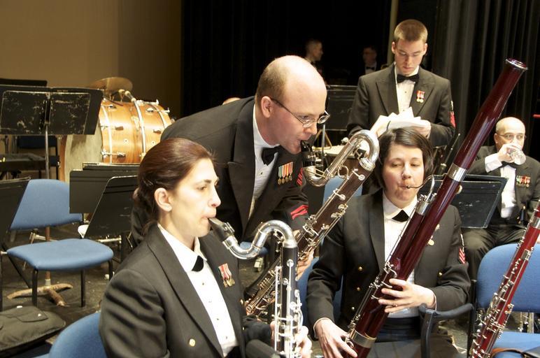 | Keywords: navy band navyband concert band concertband tour america's navy americasnavy global force for good globalforceforgood new england newengland people indoor 110327-N-2257C-002 ROCHESTER, NY (March 27, 2011) From left to right, MU1 Cyndi Wolverton, bass clarinet, MU1 Will Kelley, contra bass clarinet and MU1 Jenny Stokes, bassoonist work together on their intonation for the William Grant Still piece entitled "Songs of Separation." The U.S. Navy Concert Band led by Commanding Officer/Leader, Captain Brian Walden, performed their evening tour concert at the Hale Auditorium in Rochester, NY. The band is on their seventeenth day of a 22 day National Tour of the Northeast. (US Navy photo taken by MU1 Shana E. Catandella) 110327-N-2257C-002 ROCHESTER, NY (March 27, 2011) From left to right, MU1 Cyndi Wolverton, bass clarinet, MU1 Will Kelley, contra bass clarinet and MU1 Jenny Stokes, bassoonist work together on their intonation for the William Grant Still piece entitled "Songs of Separation." The U.S. Navy Concert Band led by Commanding Officer/Leader, Captain Brian Walden, performed their evening tour concert at the Hale Auditorium in Rochester, NY. The band is on their seventeenth day of a 22 day National Tour of the Northeast. (US Navy photo taken by MU1 Shana E. Catandella) |