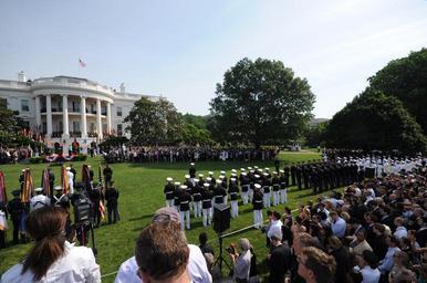 | Keywords: white house whitehouse president chancellor obama merkel germany ceremonial navy band navyband navy ceremonial band navyceremonialband people crowd outdoor 110607-N-HG258-163 WASHINGTON, D.C. (June 7, 2011) President Barack Obama delivers remarks during the arrival ceremony welcoming the chancellor of the Federal Republic of Germany, Angela Merkel. Military arrival ceremonies for visiting dignitaries have been held on the south lawn of the White House since the Kennedy administration. (U.S. Navy Photo by MUC Stephen Hassay/Released) 110607-N-HG258-163 WASHINGTON, D.C. (June 7, 2011) President Barack Obama delivers remarks during the arrival ceremony welcoming the chancellor of the Federal Republic of Germany, Angela Merkel. Military arrival ceremonies for visiting dignitaries have been held on the south lawn of the White House since the Kennedy administration. (U.S. Navy Photo by MUC Stephen Hassay/Released) |