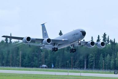 MAKE A MEME View Large Image Air Force KC-135 takes off from Eielson AFB, AK on July 12, 2011. (U.S. Air National Guard photo by Tech. Sgt. Matt Hecht) A U.S. Air Force KC-135 takes off from Eielson AFB, AK on July 12, 2011. (U.S. Air National Guard photo by Tech. Sgt. ...