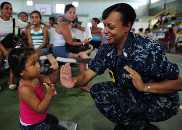 | Keywords: 110802-N-QD416-194 (6006096288).jpg U S Navy Cmdr Marjorie Alexander the department head of patient discharge aboard hospital ship USNS Comfort T-AH 20 plays patty-cake with a child at the Barranca Municipal Gym medical site in Barranca Costa Rica during Continuing Promise CP 2011 CP is a regularly scheduled mission to countries in Central and South America and the Caribbean where the U S Navy and its partnering nations work with host nations and a variety of governmental and nongovernmental agencies to train in civil-military operations DoD photo by Mass Communication Specialist 1st Class Brian A Goyak U S Navy/Released https //www flickr com/photos/39955793 N07/6006096288/ 110802-N-QD416-194 2011-08-02 14 30 https //www flickr com/people/39955793 N07 U S Department of Defense Current Photos PD-USGov U S Department of Defense Current Photos https //flickr com/photos/39955793 N07/6006096288 2016-09-03 13 53 57 United States Government Work Continuing Promise 2011 Costa Rica United States Department of Defense |