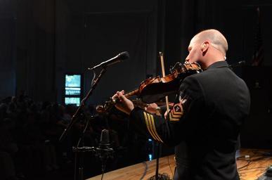 | Keywords: country bluegrass music banjo drums fiddle violin america flag concert 110907-HG258-058 SALT LAKE CITY (September 7, 2011) Chief Musician Pat White performs on stage at the Utah Cultural Celebration Center in Salt Lake City. Wednesday night's concert was the first of the group's 17 day national tour. (U.S. Navy Photo by MUC Stephen Hassay/Released) 110907-HG258-058 SALT LAKE CITY (September 7, 2011) Chief Musician Pat White performs on stage at the Utah Cultural Celebration Center in Salt Lake City. Wednesday night's concert was the first of the group's 17 day national tour. (U.S. Navy Photo by MUC Stephen Hassay/Released) |