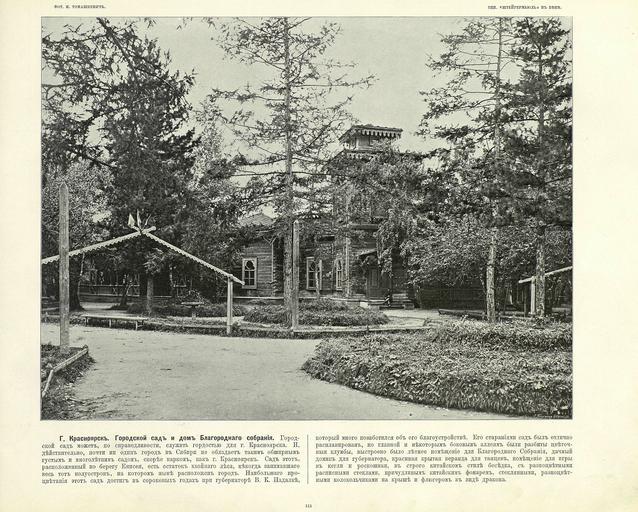| Keywords: 111 Красноярск Городской сад и дом Благородного собрания.jpg en «Great Path - Views of Siberia and Great Siberian Railway» book 1899 ru Альбом «Великий путь Виды Сиби и и Великой сиби ской железной до оги» 1899 1899 flickr photos by I R Tomaskiewicz comments by V A I-v Custom license marker 2014 04 08 PD-RusEmpire PD-old Great Path - Views of Siberia and Great Siberian Railway Uploaded with UploadWizard | ||||