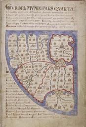 | Keywords: 1125 Lambert de Saint Omer Liber Floridus (Europa Mundi Pars Quarta).jpg Title Europa mundi pars quarta la Mapa de Europa do Liber Floridus de Lambert de Saint-Omer dun manuscrito da Bilioteca de Gand Bélxica Chorographic map of Europe from the T O world map in Lambert's Liber Floridus from the Ghent University copy In Latin with east at top http //www kbr be/collections/cart_plan/actualite/catalog_europalia_fr pdf Ghent University's copy of the Liber Floridus fol 241 Lambert de Saint-Omer c 1120 PD-old-100 Old maps of Europe Liber Floridus Maps made in the 12th century Maps in Latin ImageNote 1 1801 1267 153 229 2596 3814 2 Roma Rome ImageNoteEnd 1 ImageNote 2 134 102 2138 229 2596 3814 2 Europa mundi pars quarta Europe the Fourth Part of the World ImageNoteEnd 2 ImageNote 3 1425 2833 255 140 2596 3814 2 hispania Spain ImageNoteEnd 3 ImageNote 4 1012 2273 305 102 2596 3814 2 Alemania Germany ImageNoteEnd 4 ImageNote 5 1024 2388 280 96 2596 3814 2 Germania Germany ImageNoteEnd 5 ImageNote 6 344 1904 178 121 2596 3814 2 Norvegia Norway ImageNoteEnd 6 ImageNote 7 1273 1223 185 89 2596 3814 2 Achaia Greece ImageNoteEnd 7 ImageNote 8 1152 1057 305 89 2596 3814 2 Macedonia ImageNoteEnd 8 ImageNote 9 878 1070 172 89 2596 3814 2 Grecia Greece ImageNoteEnd 9 ImageNote 10 897 1579 223 115 2596 3814 2 Pannonia Hungary ImageNoteEnd 10 ImageNote 11 872 1420 261 102 2596 3814 2 Dalmatia the Croatian coast ImageNoteEnd 11 ImageNote 12 280 1420 197 96 2596 3814 2 gothi the Goths ImageNoteEnd 12 ImageNote 13 484 2178 267 83 2596 3814 2 Saxonia Saxony ImageNoteEnd 13 ImageNote 14 1349 2343 172 96 2596 3814 2 gallia Gaul France ImageNoteEnd 14 |