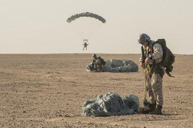 Keywords: 11th MEU freefall parachute operations with support from HSC 26 Det. 1. 141214-N-TD490-227.jpg en Marines assigned to the 11th Marine Expeditionary Unit MEU land at the drop-zone after paradropping from a MH-60S Seahawk helicopter assigned to the Desert Hawks of Helicopter Sea Combat Squadron HSC 26 Det 1 during a free-fall parachute training evolution The 11th Marine Expeditionary Unit is a forward-deployed flexible sea-based Marine air-ground task force capable of conducting amphibious operations crisis response and limited contingency operations to include enabling the introduction of follow-on forces and designated special operations in order to support the theater requirements of geographic combatant commanders HSC 26 Det 1 is attached to CTF 53 to provide combat logistics and search and rescue capability throughout the U S 5th Fleet area of responsibility U S Navy Photo by Mass Communication Specialist 1st Class Patrick W Mullen III/Released 2014-12-14 Petty Officer 1st Class Patrick Mullen https //www dvidshub net/image/1712778 141214-N-TD490-227 2015-01-02 01 52 U S 5TH FLEET AREA OF RESPONSIBILITY BH PD-USGov-Military-Navy MH-60S Seahawk 11th Marine Expeditionary Unit Images from DoD uploaded by Fæ