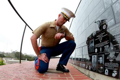 Keywords: 120121-M-KW153-211 (6766199257).jpg Maj Kyle Hanner ordnance officer with 3rd Marine Aircraft Wing pays respect to fallen Marines Capt Benjamin Sammis and Capt Travis Ford at the Mount Soledad Veterans Memorial where the Marines are permanently commemorated Sammis and Ford helicopter pilots with Marine Light Attack Helicopter Squadron 267 were killed during Operation Iraqi Freedom when their AH-1W Super Cobra helicopter crashed near Ali Aziziyal Iraq April 5 2003 Photo by Dallas Poore https //www flickr com/photos/39955793 N07/6766199257/ 120121-M-KW153-211 2012-01-21 15 35 https //www flickr com/people/39955793 N07 U S Department of Defense Current Photos PD-USGov U S Department of Defense Current Photos https //flickr com/photos/39955793 N07/6766199257 2016-09-03 12 34 12 United States Government Work United States Department of Defense