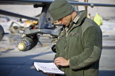 | Keywords: bagram air field bagramairfield parwan province parwanprovince operation enduring freedom operationenduringfreedom oef usaf u.s. air force usairforce isaf nato 177th fighter wing 177thfighterwing new jersey air national guard newjerseyairnationalguard njang air national guard airnationalguard f-16c f16c fighting falcon fightingfalcon 119th fighter squadron 119thfightersquadron jersey devils jerseydevils air force airforce airmen maintenance aircraft mxs royalty free royaltyfree cc free to use freetouse creative commons creativecommons creative commons royalty free public domain photo photograph digital matt hecht getty reuters ap U.S. Air Force Senior Airman Chris Maryinuk reviews technical data prior to repair work on an F-16C Fighting Falcon on Feb 5, 2012 at Bagram Air Field, Afghanistan. Maryinuk is an avionics specialist assigned to the 455th Expeditionary Aircraft Maintenance Squadron, and is deployed from the 177th Fighter Wing, New Jersey Air Natiional Guard. U.S. Air Force photo/Tech. Sgt. Matt Hecht U.S. Air Force Senior Airman Chris Maryinuk reviews technical data prior to repair work on an F-16C Fighting Falcon on Feb 5, 2012 at Bagram Air Field, Afghanistan. Maryinuk is an avionics specialist assigned to the 455th Expeditionary Aircraft Maintenance Squadron, and is deployed from the 177th Fighter Wing, New Jersey Air Natiional Guard. U.S. Air Force photo/Tech. Sgt. Matt Hecht |