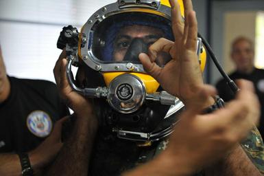 | Keywords: 120430-N-ZX920-047 (7136049633).jpg A Panamanian diver tries on a KM 37 diving helmet during a class with U S Navy Divers assigned to Mobile Diving and Salvage Unit MDSU 2 Company 2-1 as part of Navy Dive-Southern Partnership Station SPS 2012 April 30 2012 in Panama City SPS is an annual deployment of U S ships to the U S Southern Command's area of responsibility in the Caribbean and Latin America The exercise involves information sharing with navies coast guards and civilian services throughout the region U S Navy photo by Mass Communication Specialist 3rd Class Brandon Keck/Released https //www flickr com/photos/39955793 N07/7136049633/ 120430-N-ZX920-047 2012-04-30 10 09 https //www flickr com/people/39955793 N07 U S Department of Defense Current Photos PD-USGov U S Department of Defense Current Photos https //flickr com/photos/39955793 N07/7136049633 2016-09-03 11 41 31 United States Government Work Panama Panama City Southern Partnership Station United States Navy Mobile Diving and Salvage Unit Two United States Department of Defense |