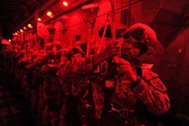 | Keywords: 120608-F-RM405-284 (7190167183).jpg U S Army Staff Sgt Alberto Colon with the 27th Engineer Battalion inspects his static line before jumping from a C-17 Globemaster III aircraft during a mission in support of Joint Operations Access Exercise JOAX 12-2 at Fort Bragg N C June 8 2012 A JOAX is designed to enhance service cohesiveness between U S Army and Air Force personnel allowing both services an opportunity to properly execute large-scale heavy equipment and troop movement DoD photo by Staff Sgt Eric Harris U S Air Force/Released https //www flickr com/photos/39955793 N07/7190167183/ 120608-F-RM405-284 2012-06-08 21 22 https //www flickr com/people/39955793 N07 U S Department of Defense Current Photos PD-USGov U S Department of Defense Current Photos https //flickr com/photos/39955793 N07/7190167183 2016-09-03 11 14 52 United States Government Work C-130H Hercules Fort Bragg South Carolina Parachutes |