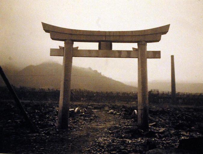 | Keywords: 127-GW-1643-137430: Atomic Bomb-Nagasaki, 1945. This shrine survived the force of the atomic bomb in Nagasaki but the sprawling ordnance plant in the background is a mass of twisted, buckled and scorched girders and framework. Photographed at Nagasaki by September 16, 1945. Official U.S. Marine Corps Photograph, now in the collections of the National Archives. (2016/10/25). 127-GW-1643-137430: Atomic Bomb-Nagasaki, 1945. This shrine survived the force of the atomic bomb in Nagasaki but the sprawling ordnance plant in the background is a mass of twisted, buckled and scorched girders and framework. Photographed at Nagasaki by September 16, 1945. Official U.S. Marine Corps Photograph, now in the collections of the National Archives. (2016/10/25). |