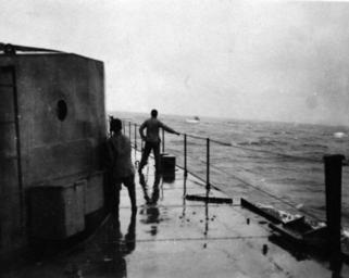 | Keywords: blackandwhite monochrome alley black and white 127-GW-224-139720: Lost at sea, because of lack of radio and radar equipment, the Japanese destroyer, Natsuzuki went sixteen miles out of her way to Formosa. Here, continuing her way out into the China Sea, a Chinese fishing junk approaches the starboard bow of the ship along the wave swept, slippery deck to hail the junk and ask directions to Formosa. The fisherman complied with the request. Photographed by T.E. McNally, January 1946. (5/5/2015). 127-GW-224-139720: Lost at sea, because of lack of radio and radar equipment, the Japanese destroyer, Natsuzuki went sixteen miles out of her way to Formosa. Here, continuing her way out into the China Sea, a Chinese fishing junk approaches the starboard bow of the ship along the wave swept, slippery deck to hail the junk and ask directions to Formosa. The fisherman complied with the request. Photographed by T.E. McNally, January 1946. (5/5/2015). |