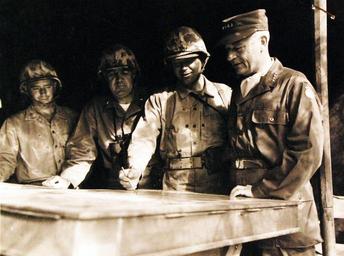 | Keywords: sculpture statue architecture ancient 127-GW-302-178481: Battle for Iwo Jima, February-March 1945. General Hull visits the 123th Marines on Iwo Jima. Colonel Leonard F. Chapmen, Jr., Commanding Officer of the artillery regiment of 3rd Marine Division, shows the position of the big guns to General John E. Hull, Commander, Armed Forces, Far East, during Operation Flag hoist. Lieutenant Colonel Earl J Rowse, S-3, of the 12th Marines and Brigadier General Thomas G. McFarland, Assistant Division Commander locates the guns on a map board for the General. Photographed 1945. U.S. Marine Corps photograph, now in the collections of the National Archives. (2016/02/17). 127-GW-302-178481: Battle for Iwo Jima, February-March 1945. General Hull visits the 123th Marines on Iwo Jima. Colonel Leonard F. Chapmen, Jr., Commanding Officer of the artillery regiment of 3rd Marine Division, shows the position of the big guns to General John E. Hull, Commander, Armed Forces, Far East, during Operation Flag hoist. Lieutenant Colonel Earl J Rowse, S-3, of the 12th Marines and Brigadier General Thomas G. McFarland, Assistant Division Commander locates the guns on a map board for the General. Photographed 1945. U.S. Marine Corps photograph, now in the collections of the National Archives. (2016/02/17). |