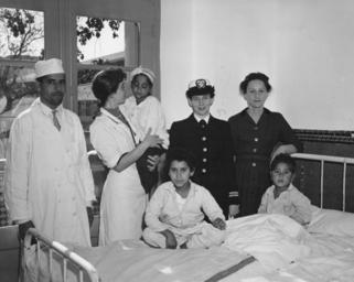 | Keywords: morocco africa nurse corps nursecorps hospital people groupshot blackandwhite monochrome black and white Nurse Corps Officers, NAS Station Hospital, visit Hospital Civil Mixte de Port Lyautey, Morocco, May 1958. [American Nurse at bedside of pediatric patients]. 12-0190-001 Nurse Corps Officers, NAS Station Hospital, visit Hospital Civil Mixte de Port Lyautey, Morocco, May 1958. [American Nurse at bedside of pediatric patients]. 12-0190-001 | ||||