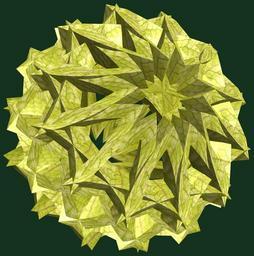 | Keywords: mathematica 3d cg parametricplot3d texture torus code program algorithm プログラム コード アルゴリズム 輪環 りんかん ドーナツ どーなつ 六芒星 ろくぼうせい geometric sculpture geometricsculpture shape geometry sculpture mapping テクスチャ マッピング 模様 もよう abstract 抽象 ちゅうしょう アブストラクト design pattern デザイン パターン graphic グラフィック グラフィクス structure 意匠 構造 symmetry 対称性 たいしょうせい シンメトリー 対称 たいしょう plant leaf foliage organic pattern outdoor black background a = 4; (* center hole size *) b = 6; (* hexa-torus *) c = -8; (* distance from the center of rotation *) d = 12; (* number of torus *) h = 2; (* height of a torus *) SetOptions[ParametricPlot3D, PlotRange -> Full, Mesh -> None, Boxed -> False, Axes -> False, PlotPoints -> 400, ImageSize -> 3000, Background -> RGBColor[{20, 50, 30}/255], PlotStyle -> Directive[Specularity[White, 30], Texture[Import["D:/tmp/71.jpg"]]], TextureCoordinateFunction -> ({#4, #5 Pi} &), Lighting -> "Neutral"]; f[v_] := TriangleWave[{-1, 1}, v/(2 Pi)]; g[v_] := TriangleWave[{-1, 1}, v/(2 Pi) + 1/4]; x = (a - g[t] - f[b s]) Cos[s]; y = (a - g[t] - f[b s]) Sin[s]; z = (a - f[t] - h f[b s]) + c; rm = Table[{x, y, z}.RotationMatrix[2 i Pi/d, {1, 1, 0}], {i, d}]; ParametricPlot3D[rm, {t, 0, 2 Pi}, {s, 0, Pi}] (*--- The Texture *) a = 4; (* center hole size *) b = 6; (* hexa-torus *) c = -8; (* distance from the center of rotation *) d = 12; (* number of torus *) h = 2; (* height of a torus *) SetOptions[ParametricPlot3D, PlotRange -> Full, Mesh -> None, Boxed -> False, Axes -> False, PlotPoints -> 400, ImageSize -> 3000, Background -> RGBColor[{20, 50, 30}/255], PlotStyle -> Directive[Specularity[White, 30], Texture[Import["D:/tmp/71.jpg"]]], TextureCoordinateFunction -> ({#4, #5 Pi} &), Lighting -> "Neutral"]; f[v_] := TriangleWave[{-1, 1}, v/(2 Pi)]; g[v_] := TriangleWave[{-1, 1}, v/(2 Pi) + 1/4]; x = (a - g[t] - f[b s]) Cos[s]; y = (a - g[t] - f[b s]) Sin[s]; z = (a - f[t] - h f[b s]) + c; rm = Table[{x, y, z}.RotationMatrix[2 i Pi/d, {1, 1, 0}], {i, d}]; ParametricPlot3D[rm, {t, 0, 2 Pi}, {s, 0, Pi}] (*--- The Texture *) |