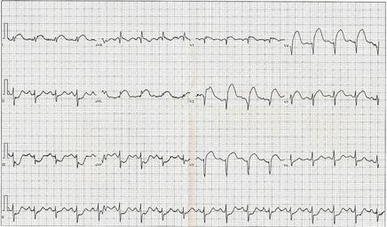 Keywords: 12 Lead EKG ST Elevation tracing only.jpg 12 Lead ECG EKG showing ST Elevation STEMI Tachycardia Anterior Fascicular Block Anterior Infarct Heart Attack Own 5/20/08 Displaced Public Myocardial infarction