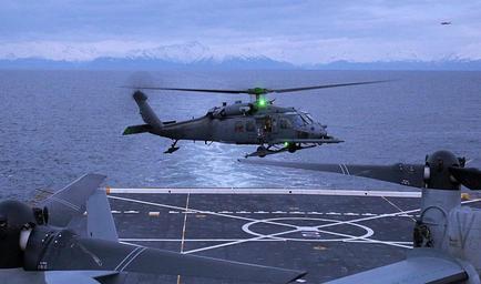 | Keywords: 130430-F-NZ143-854 (8704219981).jpg An Alaska Air National Guard HH-60 Pave Hawk helicopter assigned to the 210th Rescue Squadron prepares to land on the flight deck of the amphibious-transport dock ship USS Anchorage LPD-23 in the Cook Inlet off the coast of Anchorage Ala April 30 2013 The Pave Hawk pilots practiced landing on the USS Anchorage to receive training not readily available in the region DoD photo by Staff Sgt Zachary Wolf U S Air Force/Released https //www flickr com/photos/39955793 N07/8704219981/ 130430-F-NZ143-854 2013-04-30 21 31 https //www flickr com/people/39955793 N07 U S Department of Defense Current Photos PD-USGov U S Department of Defense Current Photos https //flickr com/photos/39955793 N07/8704219981 2016-09-03 08 55 43 United States Government Work USS Anchorage LPD-23 Sikorsky HH-60 Pave Hawk United States Department of Defense |