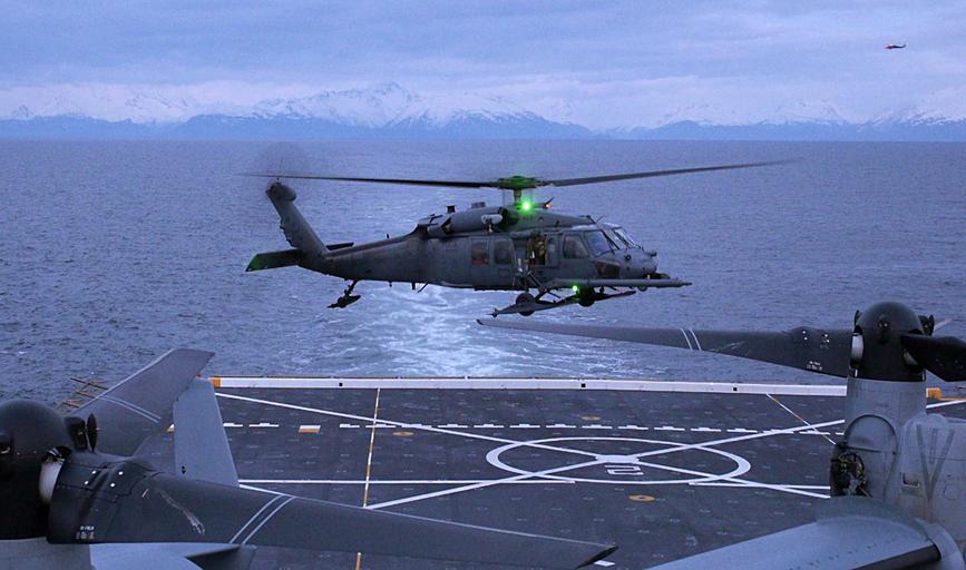 Keywords: 130430-F-NZ143-854 (8704219981).jpg An Alaska Air National Guard HH-60 Pave Hawk helicopter assigned to the 210th Rescue Squadron prepares to land on the flight deck of the amphibious-transport dock ship USS Anchorage LPD-23 in the Cook Inlet off the coast of Anchorage Ala April 30 2013 The Pave Hawk pilots practiced landing on the USS Anchorage to receive training not readily available in the region DoD photo by Staff Sgt Zachary Wolf U S Air Force/Released https //www flickr com/photos/39955793 N07/8704219981/ 130430-F-NZ143-854 2013-04-30 21 31 https //www flickr com/people/39955793 N07 U S Department of Defense Current Photos PD-USGov U S Department of Defense Current Photos https //flickr com/photos/39955793 N07/8704219981 2016-09-03 08 55 43 United States Government Work USS Anchorage LPD-23 Sikorsky HH-60 Pave Hawk United States Department of Defense |