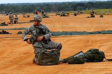 | Keywords: 130622-A-DP764-815 (9216315012).jpg A U S Army paratrooper with the 2nd Brigade Combat Team 82nd Airborne Division packs his parachute after landing at the Luzon drop zone at Camp Mackall N C June 22 2013 during Joint Operational Access Exercise JOAX 13-03 A JOAX is designed to enhance cohesiveness between U S Army Air Force and allied personnel allowing the services an opportunity to properly execute large-scale heavy equipment and troop movement DoD photo by Staff Sgt Jason Hull U S Army/Released https //www flickr com/photos/39955793 N07/9216315012/ 130622-A-DP764-815 2013-06-22 15 58 https //www flickr com/people/39955793 N07 U S Department of Defense Current Photos PD-USGov U S Department of Defense Current Photos https //flickr com/photos/39955793 N07/9216315012 2016-09-03 08 35 17 United States Government Work Camp Mackall Military in North Carolina United States Department of Defense |