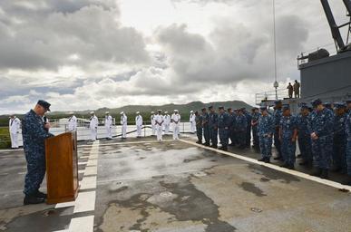 | Keywords: sailors war fighters warfighters war fighting warfighting fast flexible worldwide deployed on watch onwatch preserve peace preservepeace deter aggression deteraggression defend freedom defendfreedom heritage operate forward operateforward be ready beready tradition freedom protect commerce sea lanes sealanes liberty navy u.s. navy usnavy america united states unitedstates military war fighting first warfightingfirst nmcs navy media content service navymediacontentservice chinfo guam outdoor 130911-N-WZ747-027 GUAM (Sept. 11 2013) Chaplain Lt. Matthew G. Prince delivers a prayer during a Patriot Day ceremony aboard the submarine tender USS Frank Cable (AS 40) honoring Americans affected by 9/11. Frank Cable, forward deployed to the island of Guam, conducts maintenance and support of submarines and surface vessels deployed in the U.S. 7th Fleet area of responsibility. (U.S. Navy photo by Mass Communication Specialist Seaman Jonathan T. Erickson/Released) 130911-N-WZ747-027 GUAM (Sept. 11 2013) Chaplain Lt. Matthew G. Prince delivers a prayer during a Patriot Day ceremony aboard the submarine tender USS Frank Cable (AS 40) honoring Americans affected by 9/11. Frank Cable, forward deployed to the island of Guam, conducts maintenance and support of submarines and surface vessels deployed in the U.S. 7th Fleet area of responsibility. (U.S. Navy photo by Mass Communication Specialist Seaman Jonathan T. Erickson/Released) |