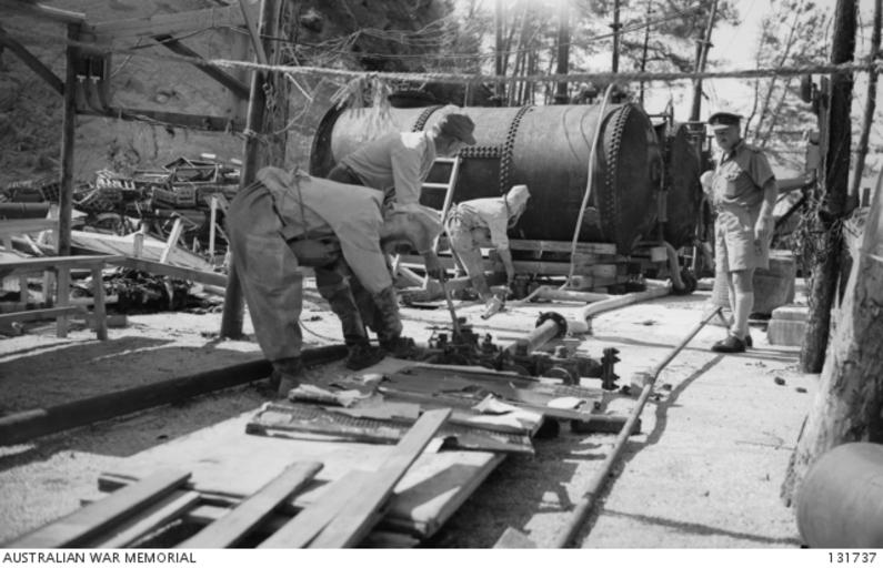 Keywords: 131737 THESE TANKS, EACH HOLDING 5 TONS, ARE BEACH-HEAD RESERVOIRS IN WHICH MUSTARD GAS IS STORED PRIOR TO ITS TRANSFERENCE BY PIPELINE TO TANKS ON LANDING SHIP, TANK (LST).jpg en OKUNOSHIMA JAPAN THESE TANKS EACH HOLDING 5 TONS ARE BEACH-HEAD RESERVOIRS IN WHICH MUSTARD GAS IS STORED PRIOR TO ITS TRANSFERENCE BY PIPELINE TO TANKS ON LANDING SHIP TANK LST FEEDER PIPE AND VALVES FOR ADJUSTING FLOW ARE IN FOREGROUND SHOWN MAJOR W E WILLIAMSON CHEMICAL WARFARE SECTION UNITED STATES ARMY CENTRE WITH JAPANESE WORKMEN ON THE RIGHT IS BRIGADIER G H CLIFTON 1946-08-03 131737 Queale Alan other versions Custom license marker 2016 07 12 Copyright expired - public domain PD-AustraliaGov Chemical weapons in Okunoshima 1946-1947 |