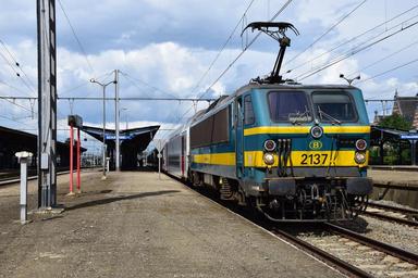 | Keywords: hle nmbs sncb 2107 p-trein ptrein p-treinen ptreinen schaarbeek quevy quévy m5 m5-rijtuigen m5rijtuigen voitures gare station schaerbeek Nadat ik 's ochtends en aan het begin van de middag het Brusselse tramnet had verkend, werd er aan het einde van de middag richting Schaarbeek getrokken. Waar de gewone reiziger zich slechts verwondert over het grote aantal perronsporen (er is zelfs een spoor 15 aanwezig), weet de treinliefhebber wel beter. Vanaf station Schaarbeek vertrekken namelijk vele spitstreinen die in Henegouwen en West-Vlaanderen eindigen. De NMBS hanteert namelijk nog steeds het concept van de piekuurtreinen (P-treinen). Deze treinen zijn slechts enkel in de spits ingelegd en vaak is het ook nog een enkele rit. 's Ochtends rijdt er dan één trein richting een grote stad (vaak Brussel) en aan het eind van de middag gaat er weer een trein terug. Doordat Brussel van groot belang is, gaan er zo tientallen P-treinen naar Brussel toe. Vanwege de chronische overbelasting van de Noord-Zuidverbinding (NZV), kan men niet keren in Brussel-Noord. Daarom gaan alle treinen die vanuit Brussel-Zuid de NZV ingaan door naar station Schaarbeek. Hier is namelijk capaciteit genoeg en bovendien is het grootste emplacement van België net boven Schaarbeek. 's Ochtends eindigen er dus tientallen P-treinen, die rond het einde van de middag via Brussel-Zuid weer terugkeren. Doordat er maar één slag wordt gereden, is dit vanzelfsprekend een vrij inefficiënt gebeuren (slechts twee ritten op één hele dag). Daarom zet NMBS voor deze P-treinen vaak ook oud materieel in. De locomotieven reeks 21 en de M4/M5-rijtuigen zijn om deze reden veelgebruikt. Door het geleidelijk verdwijnen van de reeks 21, is deze in de dienstregeling 2016 voor 80% voor de P-treinen aan te treffen. Wil je als treinliefhebber graag oude locomotieven en rijtuigen op de foto hebben, weet je dus dat je naar Schaarbeek moet gaan. Het is er namelijk heel rustig (vrijwel iedereen stapt in Brussel zelf in) en de P-treinen arriveren al ruim van tevoren vanaf het emplacement. Op bovenstaande foto is de 2107 in een mooi zongaatje met 9 M5-rijtuigen aan de haak te zien, klaar voor vertrek richting Quévy. 9 M5-rijtuigen is overigens de langste combinatie van M5 die deze dienstregeling te zien is. Hieronder is de samenstelling van de trein weergegeven voor de liefhebbers: 91 88 021 037 0-8 B 50 88 26-38 006-7 50 88 26-38 020-8 50 88 26-38 009-1 50 88 36-38 004-0 50 88 26-38 097-6 50 88 26-38 067-9 50 88 26-38 025-7 50-88 26-38 004-2 50 88 86-38 003-1 Nadat ik 's ochtends en aan het begin van de middag het Brusselse tramnet had verkend, werd er aan het einde van de middag richting Schaarbeek getrokken. Waar de gewone reiziger zich slechts verwondert over het grote aantal perronsporen (er is zelfs een spoor 15 aanwezig), weet de treinliefhebber wel beter. Vanaf station Schaarbeek vertrekken namelijk vele spitstreinen die in Henegouwen en West-Vlaanderen eindigen. De NMBS hanteert namelijk nog steeds het concept van de piekuurtreinen (P-treinen). Deze treinen zijn slechts enkel in de spits ingelegd en vaak is het ook nog een enkele rit. 's Ochtends rijdt er dan één trein richting een grote stad (vaak Brussel) en aan het eind van de middag gaat er weer een trein terug. Doordat Brussel van groot belang is, gaan er zo tientallen P-treinen naar Brussel toe. Vanwege de chronische overbelasting van de Noord-Zuidverbinding (NZV), kan men niet keren in Brussel-Noord. Daarom gaan alle treinen die vanuit Brussel-Zuid de NZV ingaan door naar station Schaarbeek. Hier is namelijk capaciteit genoeg en bovendien is het grootste emplacement van België net boven Schaarbeek. 's Ochtends eindigen er dus tientallen P-treinen, die rond het einde van de middag via Brussel-Zuid weer terugkeren. Doordat er maar één slag wordt gereden, is dit vanzelfsprekend een vrij inefficiënt gebeuren (slechts twee ritten op één hele dag). Daarom zet NMBS voor deze P-treinen vaak ook oud materieel in. De locomotieven reeks 21 en de M4/M5-rijtuigen zijn om deze reden veelgebruikt. Door het geleidelijk verdwijnen van de reeks 21, is deze in de dienstregeling 2016 voor 80% voor de P-treinen aan te treffen. Wil je als treinliefhebber graag oude locomotieven en rijtuigen op de foto hebben, weet je dus dat je naar Schaarbeek moet gaan. Het is er namelijk heel rustig (vrijwel iedereen stapt in Brussel zelf in) en de P-treinen arriveren al ruim van tevoren vanaf het emplacement. Op bovenstaande foto is de 2107 in een mooi zongaatje met 9 M5-rijtuigen aan de haak te zien, klaar voor vertrek richting Quévy. 9 M5-rijtuigen is overigens de langste combinatie van M5 die deze dienstregeling te zien is. Hieronder is de samenstelling van de trein weergegeven voor de liefhebbers: 91 88 021 037 0-8 B 50 88 26-38 006-7 50 88 26-38 020-8 50 88 26-38 009-1 50 88 36-38 004-0 50 88 26-38 097-6 50 88 26-38 067-9 50 88 26-38 025-7 50-88 26-38 004-2 50 88 86-38 003-1 |