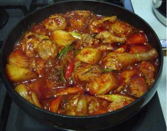 Keywords: 13-hadirector1 hoya00571 hoya0057.jpg en A korean spicy chicken stew Self-taken photo Derek Woodward 2009-10-31 cc-zero Soups and stews of Korea Chicken dishes of Korea