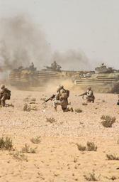 | Keywords: 13th Marine Expeditionary Unit DVIDS10286.jpg en Marines from Battalion Landing Team 2nd Battalion 1st Marines Echo Company attached to the 13th Marine Expeditionary Unit Special Operations Capable assault through targets as the Amphibious Assault Vehicles pull away to provide suppressing fire during a live-fire range during Exercise Bright Star Sept 20 The exercise is designed to enhance the interoperability and cohesiveness of coalition forces through various training scenarios to include amphibious and combined-arms operations The six-week exercise affords U S service members the opportunity to build awareness and relationships with the host nation of Egypt and fellow coalition forces The 13th MEU is currently on a Western Pacific deployment in support of the Global War on Terrorism Official U S Marine Corps Photo by Cpl Chad H Leddy released 2005-09-26 https //www dvidshub net/image/10286 10286 2005-09-26 19 06 PD-USGov 13th Marine Expeditionary Unit Images from DoD uploaded by Fæ 2nd Battalion 1st Marines |