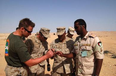 | Keywords: 13th Marine Expeditionary Unit DVIDS10305.jpg en U S Marines assigned to the 13th the 13th Marine Expeditionary Unit Special Operations Capable examine some explosive materials with a Kuwaiti officer during a combined training exercise as part of Exercise Bright Star The exercise is designed to enhance the interoperability and cohesiveness of coalition forces through various training scenarios to include amphibious and combined-arms operations The six-week exercise affords U S service members the opportunity to build awareness and relationships with the host nation of Egypt and fellow coalition forces The 13th MEU is currently on a Western Pacific deployment in support of the Global War on Terrorism Official Marine Corps Photo by Cpl Chad H Leddy released 2005-09-26 https //www dvidshub net/image/10305 10305 2005-09-26 19 22 PD-USGov 13th Marine Expeditionary Unit Images from DoD uploaded by Fæ |