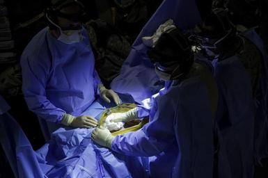 | Keywords: 140117-F-RW714-754 (12101803633).jpg From left U S Air Force Lt Col Richard Degrosa an emergency room doctor; Lt Col Gerald Fortuna a trauma surgeon; and Master Sgt Jose Arias-Patino an operating room surgical technician all with the 86th Medical Group perform a simulated exploratory laparotomy in-flight surgery aboard a C-17 Globemaster III aircraft during the Joint Readiness Training Center 14-03 field training exercise at Fort Polk La Jan 17 2014 The training was designed to educate Service members in patient care and aeromedical evacuations in combat environments DoD photo by Tech Sgt Matthew Smith U S Air Force/Released https //www flickr com/photos/39955793 N07/12101803633/ 140117-F-RW714-754 2014-01-17 20 08 https //www flickr com/people/39955793 N07 U S Department of Defense Current Photos PD-USGov U S Department of Defense Current Photos https //flickr com/photos/39955793 N07/12101803633 2016-09-03 07 37 05 United States Government Work 4th Combat Camera Squadron United States Air Force Combat Fort Polk Louisiana Medical Surgery Boeing C-17 Globemaster III United States Department of Defense |