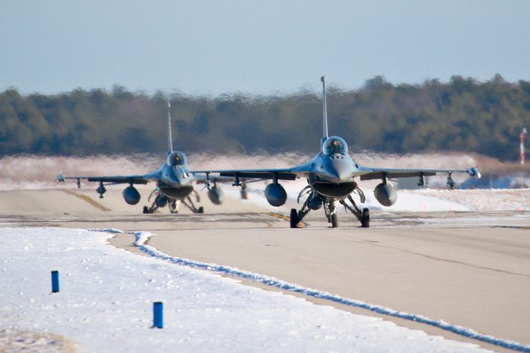 Keywords: usaf u.s. air force usairforce air force airforce af acc air combat command aircombatcommand ang air national guard airnationalguard nj new jersey newjersey 177th fighter wing 177thfighterwing 177fw ac atlantic city atlanticcity f-16c f16c fighting falcon fightingfalcon viper new jersey air national guard newjerseyairnationalguard njang airplane aircraft military egg harbor township eggharbortownship united states of america unitedstatesofamerica creative commons royalty free public domain photo photograph digital matt hecht getty reuters ap outdoor Two U.S. Air Force F-16C Fighting Falcons from the New Jersey Air National Guard's 177th Fighter Wing taxi to the end of the runway prior to a training mission on Jan. 30 at Atlantic City Air National Guard Base, N.J. (U.S. Air National Guard photo by Tech. Sgt. Matt Hecht/Released) Two U.S. Air Force F-16C Fighting Falcons from the New Jersey Air National Guard's 177th Fighter Wing taxi to the end of the runway prior to a training mission on Jan. 30 at Atlantic City Air National Guard Base, N.J. (U.S. Air National Guard photo by Tech. Sgt. Matt Hecht/Released)
