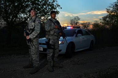| Keywords: 140402-F-II211-717 (13852295764).jpg U S Air Force Senior Airman Kristopher Smith left a patrolman with the 802nd Security Forces Squadron SFS and Airman 1st Class Johnathon Teal an entry controller with the 802nd SFS stand in front of a patrol car April 2 2014 at Joint Base San Antonio-Lackland Texas DoD photo by Airman 1st Class Krystal Ardrey U S Air Force/Released https //www flickr com/photos/39955793 N07/13852295764/ 140402-F-II211-717 2014-04-02 18 45 https //www flickr com/people/39955793 N07 U S Department of Defense Current Photos PD-USGov Sanandros 2016-09-03 M9 pistol Joint Base San Antonio Males with M4 carbine 802nd Security Forces Squadron United States Military police automobiles Chevrolet police automobiles White police automobiles |