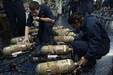| Keywords: 140408-N-RY581-025 Angel Lopez conducts SCUBA checks.JPG en 140408-N-RY581-025 MEDITERRANEAN SEA April 8 2014 Damage Controlman 3rd Class Shayne Andren left and Damage Controlman Fireman Angel Lopez conduct self-contained breathing apparatus checks aboard the aircraft carrier USS Harry S Truman CVN 75 Harry S Truman flagship of Harry S Truman Carrier Strike Group is operating in the U S 6th Fleet area of responsibility in support of maritime security operations and theater security cooperation efforts U S Navy photo by Mass Communication Specialist Seaman Emily M Blair/Released 2014-04-08 16 42 37 140408-N-RY581-025 Navy MCSN Emily M Blair USN other versions PD-USGov-Military-Navy Military people in 2014 Uploaded with UploadWizard Female sailors Scuba equipment Men and women at work Taken with Nikon D700 ImageNote 1 889 208 1015 904 3925 2612 2 DC3 SW Shayne Andren USN ImageNoteEnd 1 ImageNote 2 2245 500 1595 1711 3925 2612 2 SN Angel Lopez USN ImageNoteEnd 2 140408-N-RY581-025 Angel Lopez conducts SCBA checks.jpg en 140408-N-RY581-025 MEDITERRANEAN SEA April 8 2014 Damage Controlman 3rd Class Shayne Andren left and Damage Controlman Fireman Angel Lopez conduct self-contained breathing apparatus checks aboard the aircraft carrier USS Harry S Truman CVN 75 Harry S Truman flagship of Harry S Truman Carrier Strike Group is operating in the U S 6th Fleet area of responsibility in support of maritime security operations and theater security cooperation efforts U S Navy photo by Mass Communication Specialist Seaman Emily M Blair/Released 2014-04-08 16 42 37 140408-N-RY581-025 Navy MCSN Emily M Blair USN other versions PD-USGov-Military-Navy ImageNote 1 889 208 1015 904 3925 2612 2 DC3 SW Shayne Andren USN ImageNoteEnd 1 ImageNote 2 2245 500 1595 1711 3925 2612 2 SN Angel Lopez USN ImageNoteEnd 2 Military people in 2014 Female sailors Self contained breathing apparatus Men and women at work Taken with Nikon D700 |