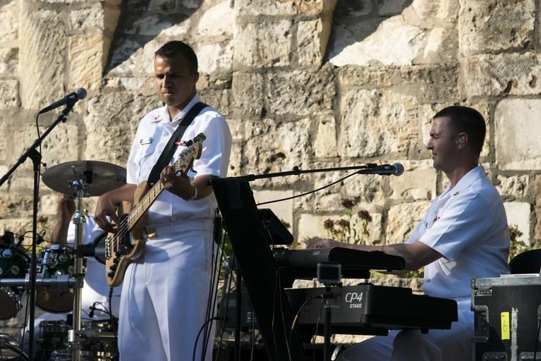| Keywords: cruisers texas navy band tour cruiserstexasnavybandtour san antonio sanantonio texas usa people performer musician outdoor 140519-N-HG258-045 SAN ANTONIO, TEXAS (May 19, 2014) Musician 1st Class Athus Delima from Dallas, Texas, left, and Musician 1st Class Justin Cody of Sauk, Wisconsin, of the Navy Band Cruisers, perform during an afternoon concert at the Arneson River Theater on the riverwalk in San Antonio, Texas. The U.S. Navy Band Cruisers, based in Washington and led by Senior Chief Musician Leon Alexander, is currently on an 12-day tour of Texas. One of the band's primary responsibilities, national tours increase awareness of the Navy in places that don't see the Navy work on a regular basis. (U.S. Navy photo by MUC Stephen Hassay/Released) 140519-N-HG258-045 SAN ANTONIO, TEXAS (May 19, 2014) Musician 1st Class Athus Delima from Dallas, Texas, left, and Musician 1st Class Justin Cody of Sauk, Wisconsin, of the Navy Band Cruisers, perform during an afternoon concert at the Arneson River Theater on the riverwalk in San Antonio, Texas. The U.S. Navy Band Cruisers, based in Washington and led by Senior Chief Musician Leon Alexander, is currently on an 12-day tour of Texas. One of the band's primary responsibilities, national tours increase awareness of the Navy in places that don't see the Navy work on a regular basis. (U.S. Navy photo by MUC Stephen Hassay/Released) |