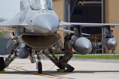 | Keywords: u.s. air force usairforce usaf united states air force unitedstatesairforce pacaf ang air national guard airnationalguard new jersey newjersey f-16c f16c fighting falcon fightingfalcon ac atlantic city atlanticcity airplane aircraft airman airmen nj njang military photo plane jersey devils jerseydevils 177th fighter wing 177thfighterwing 177thfw 119th fighter squadron 119thfightersquadron 119thfs jets tail viper f-16 f16 airforce pilots wingmen air pacific air forces pacificairforces egg harbor township eggharbortownship united states unitedstates creative commons royalty free public domain photograph digital matt hecht getty reuters ap A U.S. Air Force F-16C Fighting Falcon from the New Jersey Air National Guard's 177th Fighter Wing "Jersey Devils" prepares to depart Atlantic City Air National Guard Base, N.J. for a Pacific Air Forces (PACAF) deployment on May 27, 2014. (U.S. Air National Guard photo by Tech. Sgt. Matt Hecht/Released) A U.S. Air Force F-16C Fighting Falcon from the New Jersey Air National Guard's 177th Fighter Wing "Jersey Devils" prepares to depart Atlantic City Air National Guard Base, N.J. for a Pacific Air Forces (PACAF) deployment on May 27, 2014. (U.S. Air National Guard photo by Tech. Sgt. Matt Hecht/Released) |