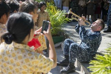 | Keywords: 140530-N-NW827-509 (14327513942).jpg U S Navy Musician 1st Class Lucas Pawolski right a trumpeter assigned to the U S 7th Fleet Band plays for students with the Giovanni Catholic School May 30 2014 during a concert in support of Pacific Partnership 2014 in Kupang Indonesia Pacific Partnership is an annual deployment of forces designed to strengthen maritime and humanitarian partnerships during disaster relief operations while providing humanitarian medical dental and engineering assistance to nations of the Pacific DoD photo by Mass Communication Specialist 1st Class Stephen Oleksiak U S Navy/Released https //www flickr com/photos/39955793 N07/14327513942/ 140530-N-NW827-509 2014-05-29 20 31 https //www flickr com/people/39955793 N07 U S Department of Defense Current Photos PD-USGov U S Department of Defense Current Photos https //flickr com/photos/39955793 N07/14327513942 2016-09-03 06 56 19 United States Government Work Kupang city Navy Expeditionary Combat Command Pacific Partnership 2014 Trumpets Taken with Nikon D4 |