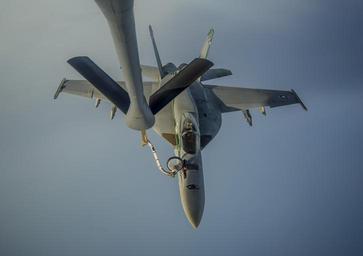 | Keywords: 140605-N-ZS026-207 (14218692287).jpg A U S Navy F/A-18E Super Hornet aircraft with Strike Fighter Squadron VFA 195 conducts an aerial refueling with an Air Force KC-135 Stratotanker aircraft assigned to the 909th Air Refueling Squadron over the Philippine Sea June 5 2014 VFA-195 was attached to Carrier Air Wing CVW 5 and was underway with the George Washington Carrier Strike Group conducting maritime security operations and theater security cooperation efforts in the U S 7th Fleet area of responsibility DoD photo by Mass Communication Specialist 1st Class Trevor Welsh U S Navy/Released https //www flickr com/photos/39955793 N07/14218692287/ 140605-N-ZS026-207 2014-06-05 16 56 https //www flickr com/people/39955793 N07 U S Department of Defense Current Photos PD-USGov U S Department of Defense Current Photos https //flickr com/photos/39955793 N07/14218692287 2016-09-03 06 51 00 United States Government Work Taken with Nikon D3s F/A-18E Super Hornet in flight Aerial refueling by KC-135 Stratotanker as seen from tanker Files from the U S Department of Defense Flickr stream |