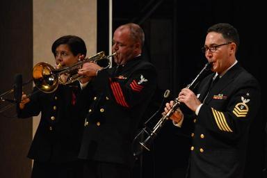 | Keywords: commodores tour 2014 tour2014 west reading westreading people indoor 141027-N-DD694-008 WEST READING, Pa. (Oct. 27, 2014) From left to right, Chief Musician Jennifer Krupa, Musician 1st Class Tim Stanley, and Senior Chief Musican William Mulligan perform with the United States Navy Band Commodores. The concert was part of the Commodores' 2014 National Tour. (U.S. Navy photo by Musician 1st Class Jonathan Barnes/Released) 141027-N-DD694-008 WEST READING, Pa. (Oct. 27, 2014) From left to right, Chief Musician Jennifer Krupa, Musician 1st Class Tim Stanley, and Senior Chief Musican William Mulligan perform with the United States Navy Band Commodores. The concert was part of the Commodores' 2014 National Tour. (U.S. Navy photo by Musician 1st Class Jonathan Barnes/Released) |