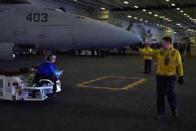 | Keywords: aircraft carrier aircraftcarrier cvn 74 cvn74 john c. stennis johncstennis mcsn christopher frost mcsnchristopherfrost 141210-N-IK337-054 PACIFIC OCEAN (Dec. 10, 2014) - Avition Boatswain's Mate (Handling) Airman Desiree Gooch, from Gainsville, Ga., and Aviation Boatswain's Mate (Handling) 2nd Class Zachary Hickman, from Marissa, Ill., park an F/A-18E Super Hornet from the Fist of the Fleet of Strike Fighter Squadron (VFA) 25 in the hangar bay of Nimitz-class aircraft carrier USS John C. Stennis (CVN 74). Stennis is currently undergoing an operational training period in preparation for future deployments. (U.S. Navy Photo by Mass Communication Specialist Seaman Christopher Frost / Released) 141210-N-IK337-054 PACIFIC OCEAN (Dec. 10, 2014) - Avition Boatswain's Mate (Handling) Airman Desiree Gooch, from Gainsville, Ga., and Aviation Boatswain's Mate (Handling) 2nd Class Zachary Hickman, from Marissa, Ill., park an F/A-18E Super Hornet from the Fist of the Fleet of Strike Fighter Squadron (VFA) 25 in the hangar bay of Nimitz-class aircraft carrier USS John C. Stennis (CVN 74). Stennis is currently undergoing an operational training period in preparation for future deployments. (U.S. Navy Photo by Mass Communication Specialist Seaman Christopher Frost / Released) |
