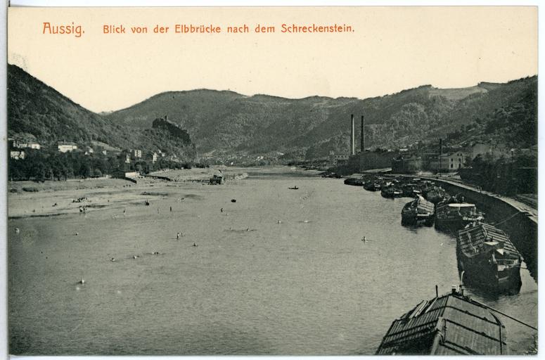 | Keywords: 14318-Aussig-1912-Blick von der Elbbrücke mit Schreckenstein-Brück & Sohn Kunstverlag.jpg Aussig; Blick von der Elbbrücke mit Schreckenstein Brück Sohn 14318 yes 1912 own Brück Sohn Kunstverlag Meißen cc-zero Střekov castle Elbe in Ústí nad Labem Baths in the Czech Republic Barges of the Czech Republic 1912 postcards of Ústí nad Labem Region 1912 postcards published by Brück Sohn Postcards of Ústí nad Labem published by Brück Sohn Images from Brück Sohn Uploaded with VicuñaUploader | ||||