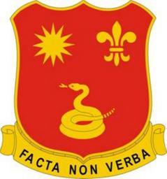 | Keywords: 143rd Field Artillery Regiment DUI.jpg A Gold color metal and enamel device 1 1/8 inches 2 86 cm in height overall consisting of a shield blazoned Gules in chief fesswise a sun in splendor of twelve rays the 40th Division shoulder sleeve insignia and a fleur-de-lis Or in base a rattlesnake coiled to strike of the like Attached below the shield a Gold scroll inscribed FACTA NON VERBA in Black letters Symbolism The gold sun is the shoulder sleeve insignia of the 40th Division; the rattlesnake represents the service on the Mexican Border and the fleur-de-lis the service in France Background The distinctive unit insignia was originally approved for the 143d Field Artillery Regiment California National Guard on 18 March 1925 It was amended to change the design of the shield on 3 November 1925 It was redesignated for the 143d Field Artillery Battalion California National Guard on 30 July 1942 The insignia was redesignated for the 629th Field Artillery Battalion California National Guard on 11 October 1951 It was redesignated for the 143d Artillery Regiment California National Guard on 1 March 1961 The insignia was redesignated for the 143d Field Artillery Regiment California Army National Guard on 9 August 1972 2012-12-24 14 22 59 http //www tioh hqda pentagon mil/Heraldry/ArmyDUISSICOA/ArmyHeraldryUnit aspx u 3504 Institute of Heraldry PD-USGov PD-USGov-Military-Army-USAIOH US Army Regimental Distinctive Unit Insignia Field Artillery 143 Uploaded with UploadWizard US Army Distinctive Unit Insignia 1 twelve rays Or in heraldry |