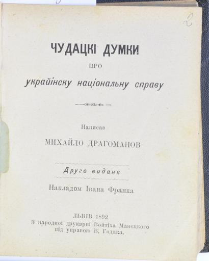 Keywords: Драгоманов Чудацкі думки 1466.jpg ихайло Д агоманов Чудацкі думки п о ук айінску національну сп аву Львів 1892 Титульний а куш З особистої бібліотеки І Ф анка 1892 Institution Shevchenko Institute of Literature Digital Collection PD-old-70-1923 1790 books from Germany Franko Personal Library Collections of books in libraries in Ukraine Shevchenko Institute of Literature Uploaded with VicuñaUploader |