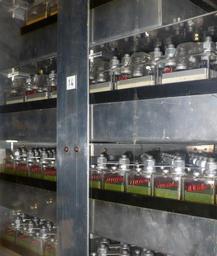 | Keywords: 14 Bathyscaph Trieste German Museum Munich.JPG Bathyscaph Trieste German Museum Munich 1 Schalttafel für die Außenbeleuchtung 3 Scheinwerfer Quecksilberdampflampen an der Unterseite des Schwimmkörpers und 2 Glühlampen in Stahlgehäusen am Beobachtungsfenster der Tauchkugel und im Vorzimmer Ateliers de Constructions Mécaniques de Vevey S A Vevey Schweiz 2 Schalttafel zur Betätigung der Ballastschleusen und anderen Einrichtungen Ateliers de Constructions Mécaniques de Vevey S A Vevey Schweiz 3 Schalttafel für die Antriebsmotoren Ateliers de Constructions Mécaniques de Vevey S A Vevey Schweiz 4 Reservematerial 5 Chronometer des Fabrikats wie es auch bei den Ballonflügen in die Stratosphäre 1931 und 1932 von Auguste Piccard benutzt wurde Ateliers de Constructions Mécaniques de Vevey S A Vevey Schweiz 6 Totalisator zur Kontrolle der Ballastabgabe Mit zwei Sekunden-Zählwerken die nur laufen wenn der Strom der zugehörigen Ballastschleuse unterbrochen ist und Ballast abgegeben wird Da der Ballastausfluß jeder Schleuse ziemlich genau 10 kg je Sekunde beträgt kann man sofort erkennen wie viel Ballast verbraucht worden ist Langines Compagnie des Mantres Longines Francillon S A St Imier Schweiz 7 Manometer die zur Ermittlung der Tauchtiefe den Wasserdruck messen Haenni Jegenstorf Schweiz 8 Hochdruckventil 1200 kp/qcm Maschinenfabrik Burckhardt Aktiengesellschaft Basel Schweiz 9 Wasserdichter und explosionsgeschützter Fernsprechapparat für Batteriebetrieb mit einer Buchse im Schwimmkörper so dass nach dem Auftauchen eine Kabelverbindung mit Begleitfahrzeugen hergestellt und so beim Tauchen bis in geringe Tiefen aufrechterhalten werden kann Società Italiana Telecomunicazioni Siemens s p a Milano Italien 10 Automatische Filmkamera Bolex H 16 Reflex Paillard S A Ste Croix Schweiz 11 Photographische Kamera Exakta Ihagee Kamerawerk A G Dresden 12 Anzeigeinstrument des Nickelwiederstandsthermometers zur Messung der Temperatur des Tragebenzins Bosco Co S p a Torino Italien 13 Pendel zur Bestimmung der Trimmlage 14 Zink-Silber-Akkumulatoren zum Betrieb elektrischer Geräte der Ballastschleusen der Haltemagnete der Antriebsmotoren der Ventilatoren der Scheinwerfer Lampen und Innenbeleuchtung 330 Zellen zu je 1 5 Volt Electrona S A Boudry Schweiz 15 Pressluftflaschen zum Ausblasen des Wassers aus Vorzimmer und Einsteigeschacht AGA A G Pratteln-Zürich-Genf 16 Sauerstoff-Flaschen der Belüftungsanlage um den Sauerstoffgehalt der Atemluft in der Tauchkugel zu erneuern AGA A G Pratteln-Zürich-Genf 17 Natronpatronen Aus den Druckflaschen in einem Injektor strömender Sauerstoff saugt Raumluft durch diese drei Patronen Kohlendioxyd wird absorbiert und die gereinigte Luft gelangt gemischt mit Sauerstoff im Kreislauf in die Kabine zurück Drägerwerk Lübeck 18 Schalttafel Ateliers de Constructions Mécaniques de Vevey S A Vevey Schweiz 19 Unterwassertelefon nach Russel Lewis Laboratorium für Unterwasserschall New London Connecticut USA mit dem auch während des Tauchens eine Sprech- oder Signalverbindung mit dem Begleitschiff aufrechterhalten werden kann Die beim Sprechen auf das Mikrofon auftreffenden Schallwellen werden im Bereich von 300 bis 3000 Hertz in elektrische Schwingungen und nach Verstärkung zur à bertragung im Wasser in Unterschallschwingungen von 8387 bis 11087 Hertz umgewandelt Einseitenband-Modulation mit unterdrücktem Träger Beim Empfang findet der umgekehrte Vorgang statt 20 Echolot 21 Log zum messen der Vertikalgeschwindigkeit 22 Innenbeleuchtung mit 6 kleinen Glühlampen zur Beobachtung der Instrumente Sie beleuchten die weiß gestrichene Decke der Tauchkugel und sind gegen die Besatzung abgeschirmt um Blendwirkung zu vermeiden 23 Traggerüste für die Geräteausstattung Verformungen der Kugel durch Temperaturänderungen werden von Schraubfedern aufgenommen die in Bohrungen am oberen Ende der Stangen sitzen und einen Messingkolben gegen die Kugelwand drücken Ateliers de Constructions Mécaniques de Vevey S A Vevey Schweiz 24 Sitze 25 Fußboden der den Keller abdeckt Im Keller werden Alkalipatronen zur Erneuerung der Atemluft Druckgasflaschen zum Ausblasen des Einsteigschachtes nach einer Tauchfahrt und anderes Reservematerial aufbewahrt 26 Tauchkugel Fried Krupp Essen 27 Einsteigeluke 28 Hauptbeobachtungsfenster 29 Tonbandgerät Kudelski Enregistreur autonomes Nagra Paudex-Lausanne own Reinraum 2010-09-19 Trieste submarine 1953 |