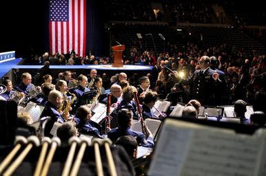 | Keywords: army air force illinois national guard inauguration ceremony governor elect bruce rauner springfield ill. ill state commander chief soldiers airmen 144 566 band peoria usa auditorium concert band music people crowd U.S. Army Chief Warrant Officer 2 Christopher N. Jones, commander of the 144th Army Band, conductgs the Illinois National Guard's 144th Army Band and 566th Air Force Band as they perform at the inauguration ceremony of Governor-elect Bruce Rauner in Springfield, Ill., Jan. 12, 2015. As Illinois' governor, Rauner will serve as the commander in chief for the Soldiers and Airmen of the Illinois National Guard while they are not under federal activation. (U.S. Air National Guard photo by Staff Sgt. Lealan Buehrer/Released) U.S. Army Chief Warrant Officer 2 Christopher N. Jones, commander of the 144th Army Band, conductgs the Illinois National Guard's 144th Army Band and 566th Air Force Band as they perform at the inauguration ceremony of Governor-elect Bruce Rauner in Springfield, Ill., Jan. 12, 2015. As Illinois' governor, Rauner will serve as the commander in chief for the Soldiers and Airmen of the Illinois National Guard while they are not under federal activation. (U.S. Air National Guard photo by Staff Sgt. Lealan Buehrer/Released) |