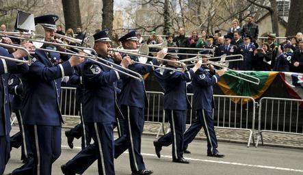 MAKE A MEME View Large Image Instrumentalists with the Air National Guard Band of the Northeast perform in the New York City St. Patrick's Day Parade in New York March 17, 2015. The Airmen played for spectators along the parade’s Fifth Avenue route as part of their ...