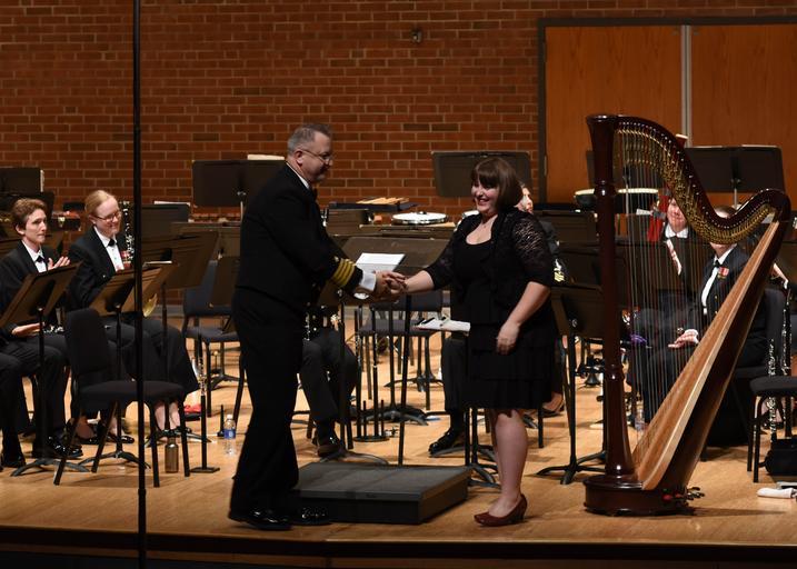 Keywords: towson high school concerto competition navy band educational patriotis highschoolconcertocompetitionnavybandeducationalpatriotis maryland usa high school concerto competition navy band educational patriotism outreach concert highschoolconcertocompetitionnavybandeducationalpatriotismoutreachconcert music concert band concert 150424-N-HG258-100 TOWSON, MARYLAND (April 24, 2015) Captain Brian O. Walden, left, congratulates Morgan Mackenzie Short, right, after her performance of "Danses sacrees et profanes" during an the evening Navy Band High School Concerto Competition Concert. Now in it’s 15th year, the United State Navy Band is has been proud to host and present the High School Concerto Competition. Encouraging young musicians is one of the Navy Band’s educational objectives and this annual program is an opportunity for talented high school age musicians to perform with the Band. (U.S. Navy photo by Chief Musician Stephen Hassay/Released) 150424-N-HG258-100 TOWSON, MARYLAND (April 24, 2015) Captain Brian O. Walden, left, congratulates Morgan Mackenzie Short, right, after her performance of "Danses sacrees et profanes" during an the evening Navy Band High School Concerto Competition Concert. Now in it’s 15th year, the United State Navy Band is has been proud to host and present the High School Concerto Competition. Encouraging young musicians is one of the Navy Band’s educational objectives and this annual program is an opportunity for talented high school age musicians to perform with the Band. (U.S. Navy photo by Chief Musician Stephen Hassay/Released) |