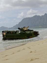| Keywords: bellows air force base bellowsairforcebase hawaii usa outdoor landscape seaside shore An Amphibious Assualt Vehicle, with Battalion Landing Team, 15th Marine Expeditionary Unit, conduct an amphibious landing demonstration at Marine Corps Training Area Bellows, Hawaii May 19, 2015. The landing is part of Culebra Koa 15, an on-going joint sea-basing exercise taking place in Hawaii during the MARFORPAC-hosted U.S. Pacific Command Amphibious Leaders Symposium (PALS). PALS is designed to bring together senior leaders of allies and partners Marine Corps, naval infantries, and militaries spanning the Indo-Asia-Pacific region with interest in military amphibious capability development. This year, 22 nations sent representatives to observe the training. (U.S. Marine Corps photo by Cpl.Hilda Becerra) An Amphibious Assualt Vehicle, with Battalion Landing Team, 15th Marine Expeditionary Unit, conduct an amphibious landing demonstration at Marine Corps Training Area Bellows, Hawaii May 19, 2015. The landing is part of Culebra Koa 15, an on-going joint sea-basing exercise taking place in Hawaii during the MARFORPAC-hosted U.S. Pacific Command Amphibious Leaders Symposium (PALS). PALS is designed to bring together senior leaders of allies and partners Marine Corps, naval infantries, and militaries spanning the Indo-Asia-Pacific region with interest in military amphibious capability development. This year, 22 nations sent representatives to observe the training. (U.S. Marine Corps photo by Cpl.Hilda Becerra) |